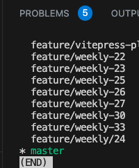 git branch这里还有个case,分支多的话需要翻页查看,才能找到当前分支